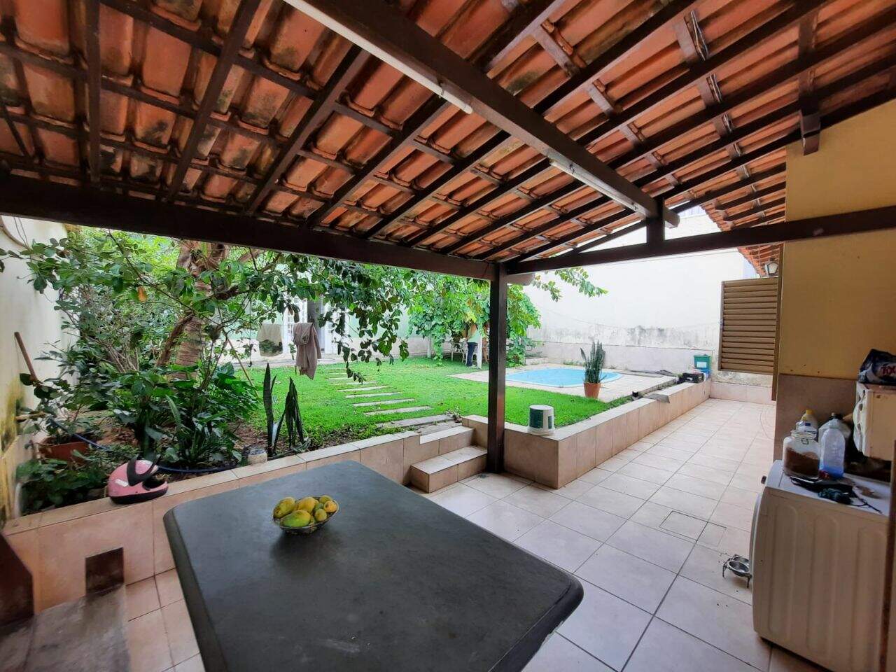 Casa bem localizada, próximo ao Colégio Dona Clara, lote 360 m². Sala piso tábua corrida, copa com piso em ardósia, 03 quartos com armários piso tábua corrida, sendo 01 suíte; cozinha com armários com piso em cerâmica. Área externa ampla com barracão nos fundos 03 cômodos e área livre com piscina, árvores frutíferas e um parreira. Vaga para até 04 carros.